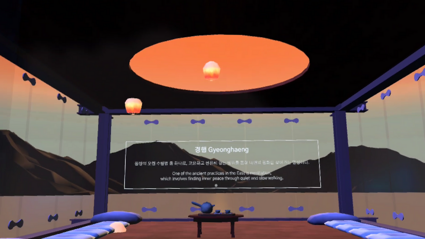 한국의 전통 의식, 의례, 명상을 가상 현실과 결합하여 진정한 몰입형 경험을 선사합니다. 참가자들은 마치 다른 세계로 이동한 듯한 느낌을 받으며 그곳에서 내면의 자아와 연결되고 평화와 평온을 얻게 됩니다.